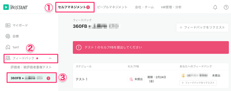 1.「セルフマネジメント」→「フィードバック」→該当するフィードバックのタイトルをクリックします。