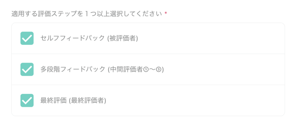 例「セルフフィードバックと中間評価のみにチェックを入れ、最終評価のチェックを外した場合」